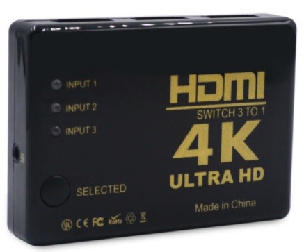 O comutador HDMI compacto serve como um confiável divisor entre diferentes dispositivos HDMI.
