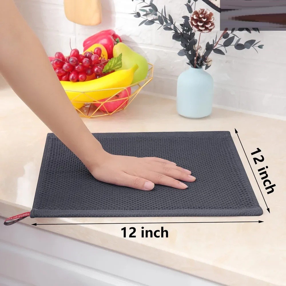 Conjunto 2 panos de cozinha em algodão castanho 30x30 cm Tecido em waffle Panos absorventes para louça e limpeza Reutilizáveis