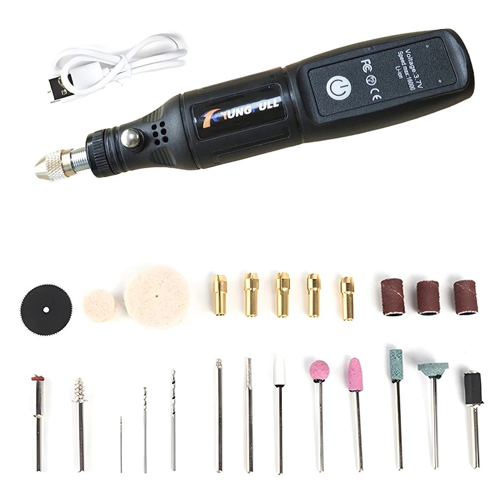Conjunto 24 pcs Mini furadeira elétrica manual de gravação USB recarregável 0,5–3,2 mm Para madeira metal vidro
