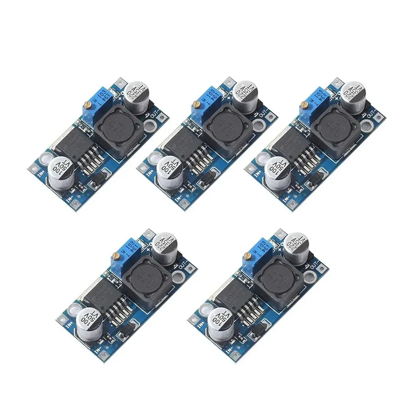 Conjunto prático de 5 módulos reguladores de tensão step-down para uso universal em eletrónica, fontes de alimentação e projetos DIY. Descrição completa