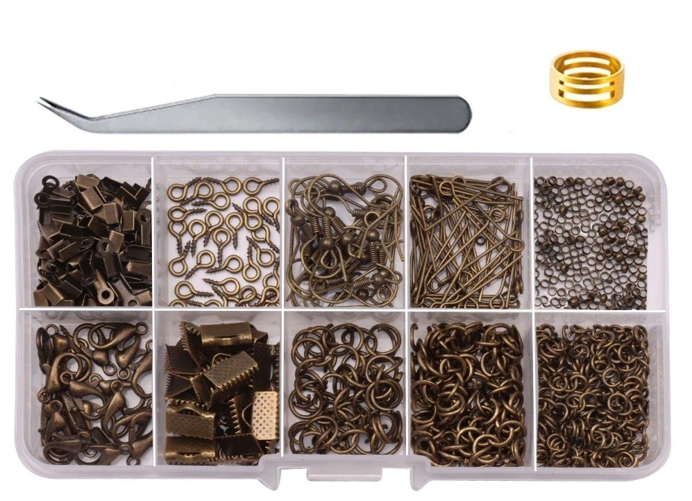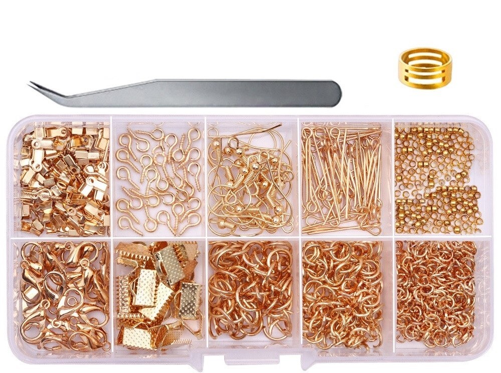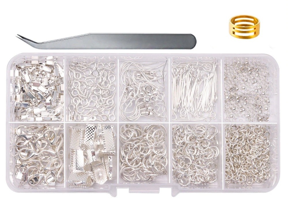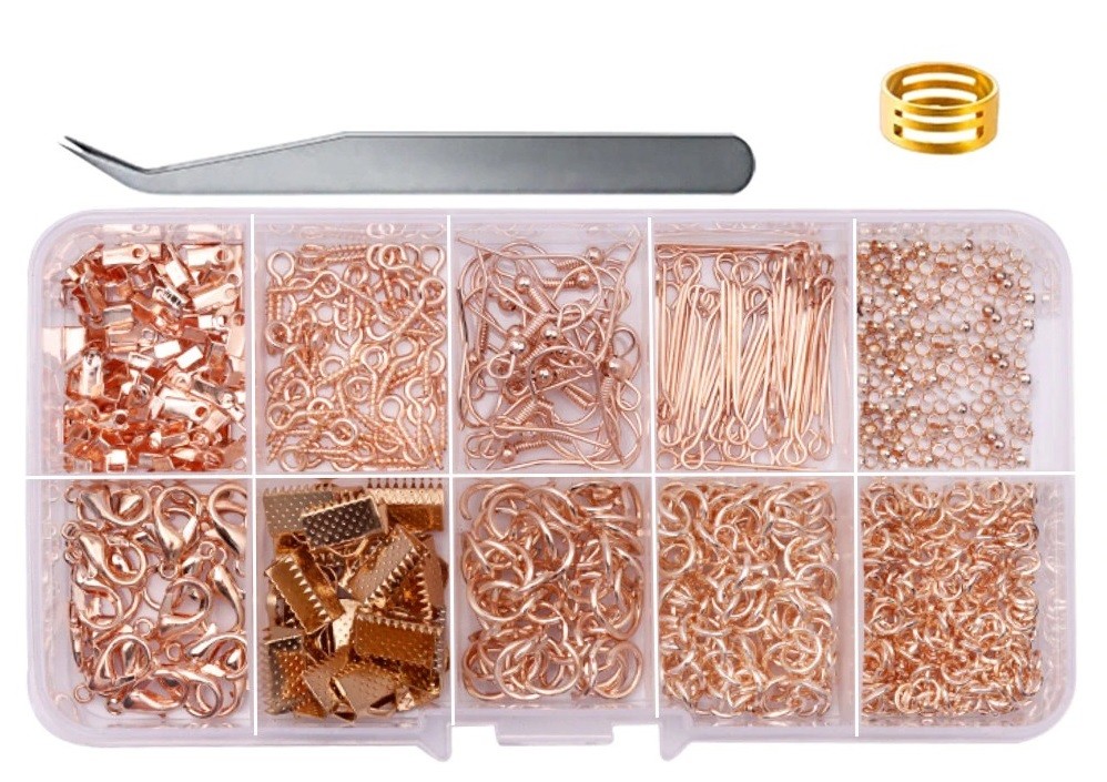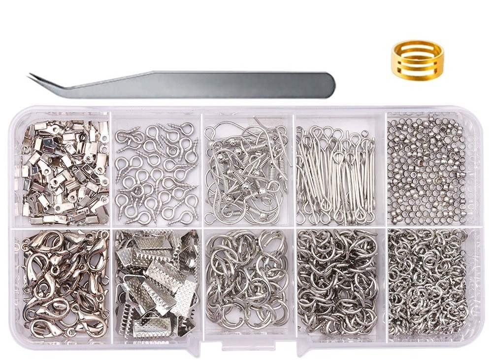 Para fabrico de pulseiras e colares. Conjunto criativo. Anéis de ligação incluindo fechos para colares. Descrição completa