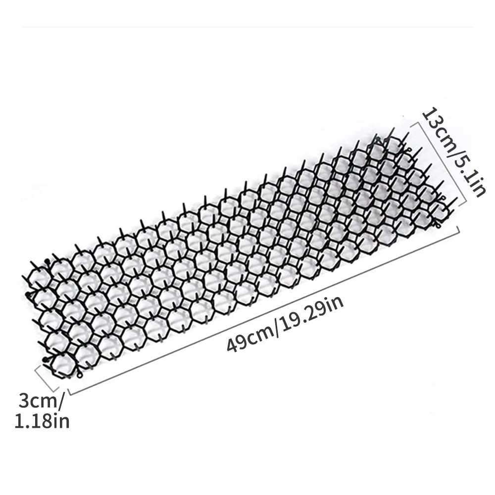 Página inicial Página inicial Hobby e jardim Acessórios de jardinagem Afastadores de animais Conjunto de 10 tiras com picos 49 x 14 cm Repelente de gatos e animais de jardim em plástico ABS com estacas e 30 tiras de aperto Contra intrusões