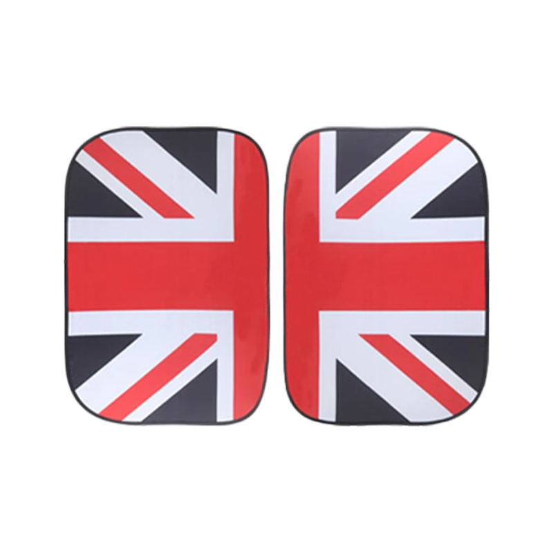 Conjunto de 2 capas de sol para janelas de tecto Mini Cooper 50x70 cm Bandeira Britânica Protecção UV Isolamento Térmico Instalação Fácil