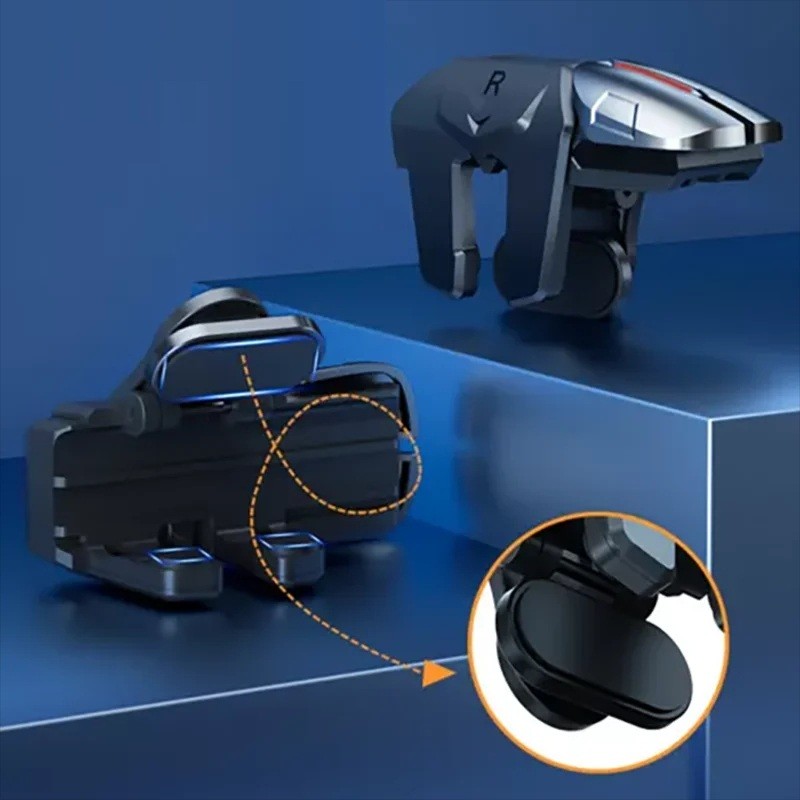Página inicial Página inicial Fotografia, áudio-vídeo, gaming Comandos de jogos Conjunto de 2 pcs de gatilhos de jogo G21 para telemóvel com 6 dedos para PUBG e outros jogos de tiro, universal para Android e iOS