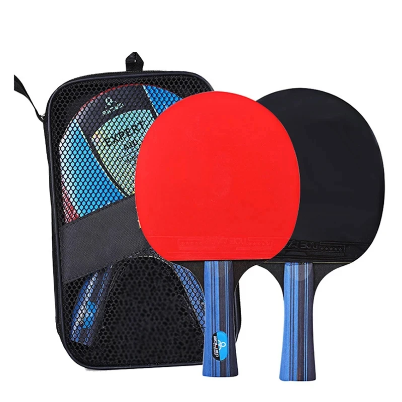 Conjunto de 2 raquetes de ténis de mesa com cabo longo 7 camadas de madeira espuma elástica borracha treino desportivo competição estojo