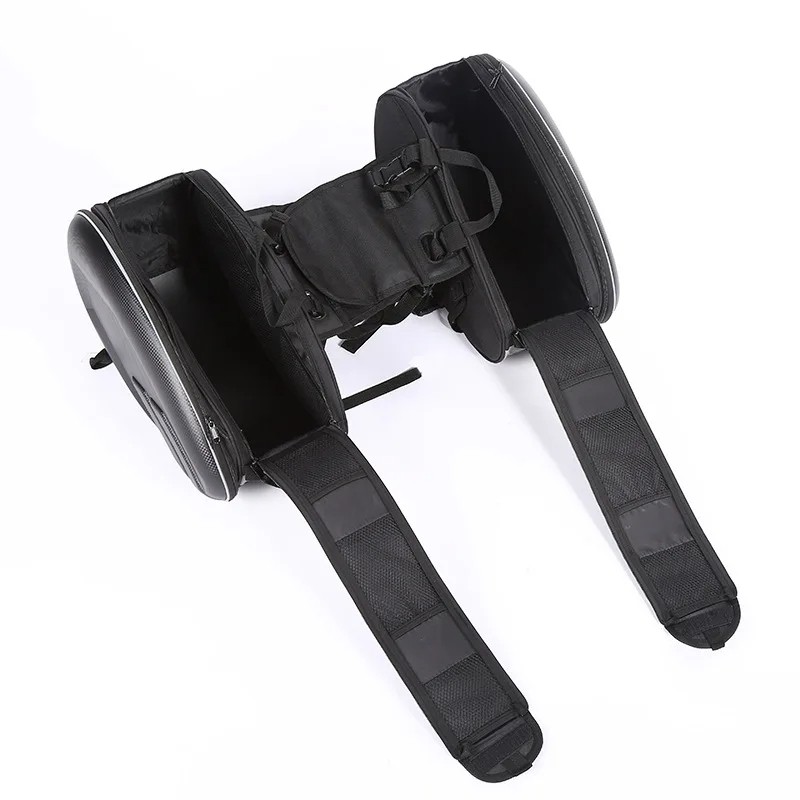 Malas de motocicleta resistentes em material PU com grande espaço de armazenamento para capacete e equipamento. Adequadas para garfo e para baixo do assento. Descrição completa