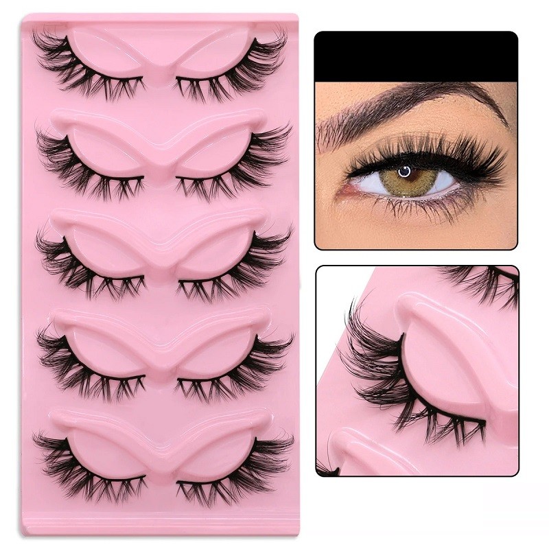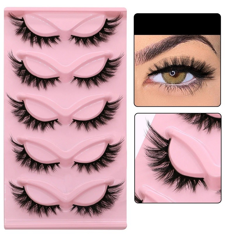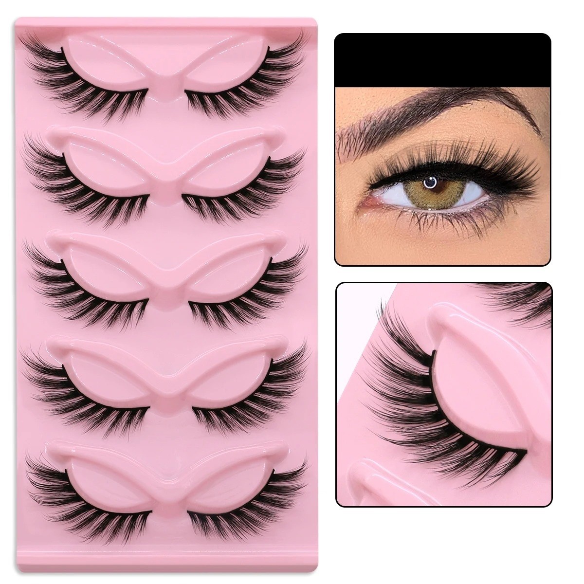 Para um olhar encantador: Conjunto de 5 pares de pestanas longas com faixa completa para olhos naturalmente bonitos e expressivos. Descrição completa