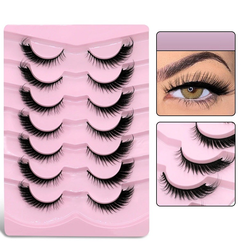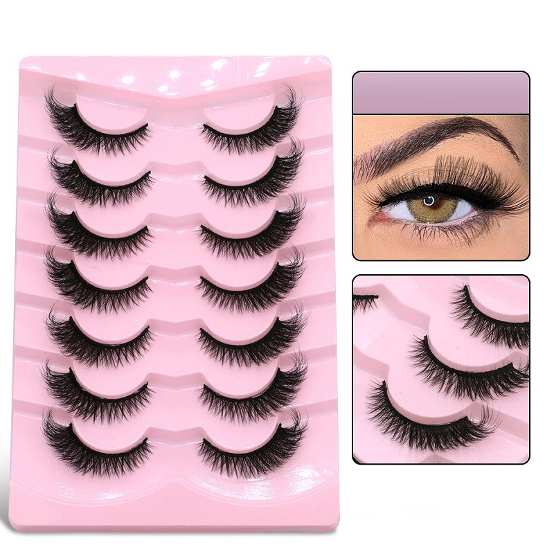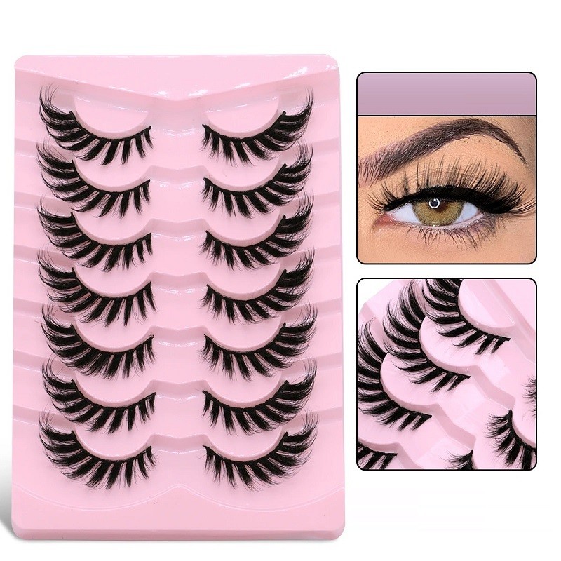 Conjunto de 7 pares de pestanas falsas Pestanas longas com faixa completa Conjunto para extensão de pestanas Pestanas adesivas naturais