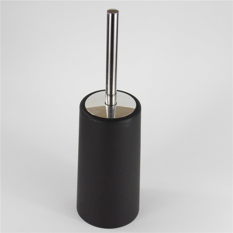 Conjunto com dispensador de sabonete, copo, suporte para escovas, prato para sabonete sólido, escova de WC e cesto.