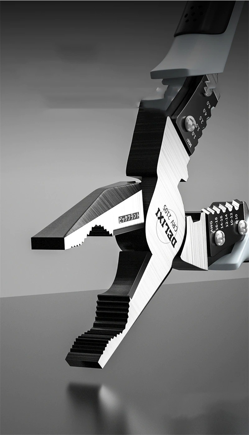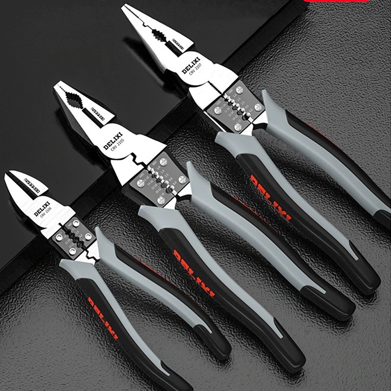 Conjunto de alicates para cortar, crimpar ou desisolar cabos. Aço cromo-vanádio. Descrição completa