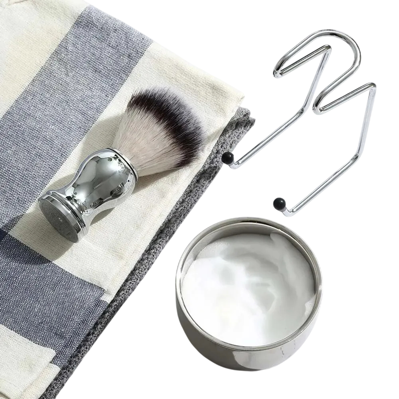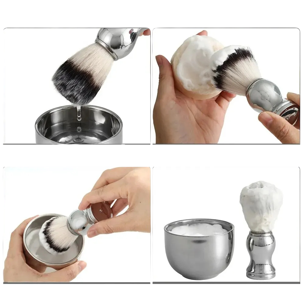 Conjunto de barbear 3 em 1 Aço inoxidável Pincel 10,5 x 3,4 cm Tigela 8,2 x 5,8 cm Suporte 8 x 11 cm Conjunto masculino para barbear clássico