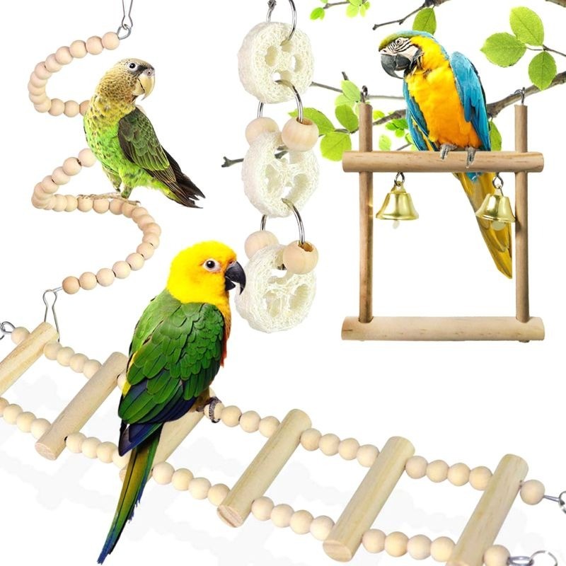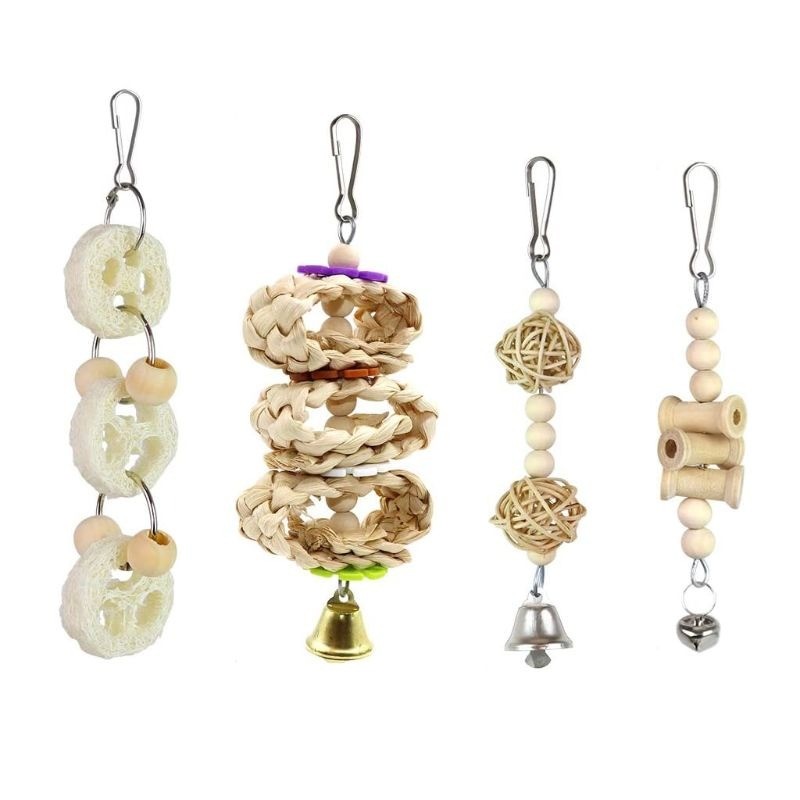 Conjunto de brinquedos pendurados para aves 8 pcs