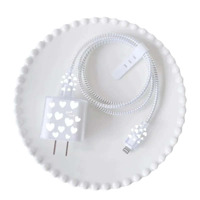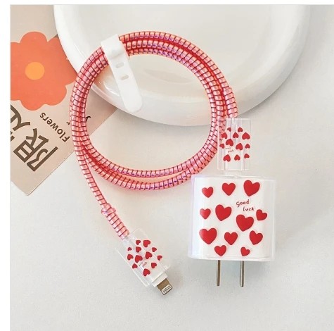 Conjunto de capas protetoras para carregador e cabo de iPhone, capa decorativa contra quebras, 5 peças, compatível com 18W/20W