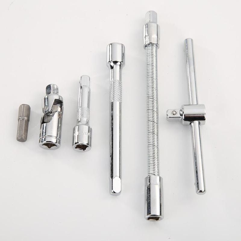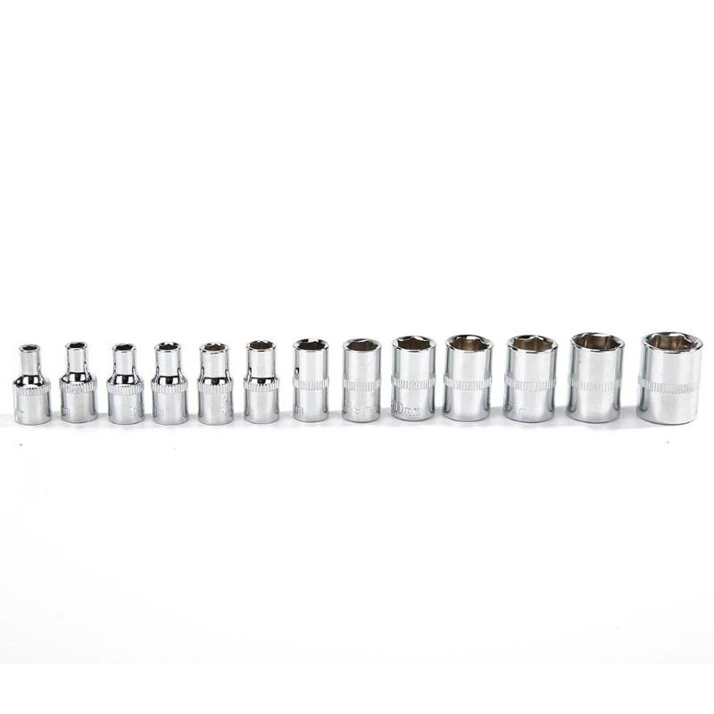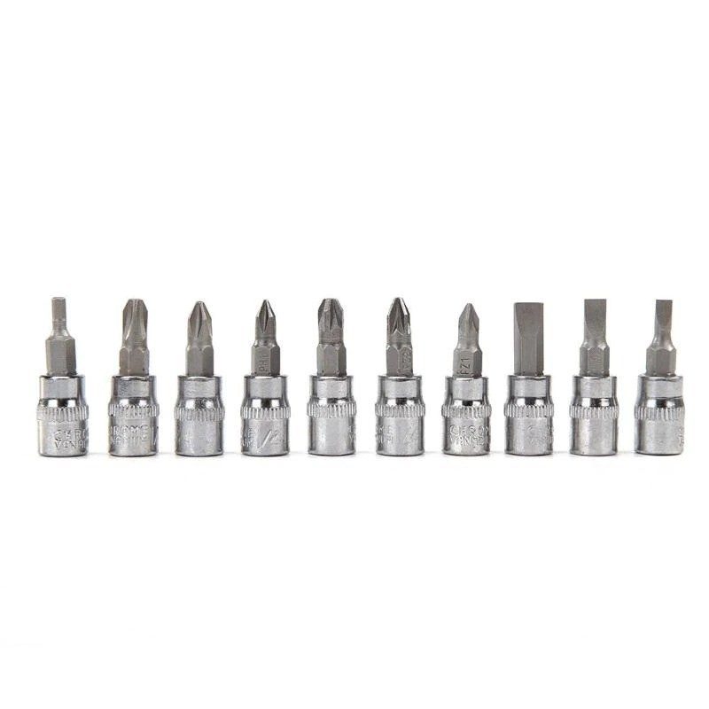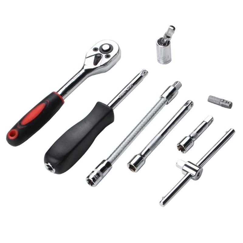 O conjunto de 46 pcs inclui uma catraca e uma chave de fendas com um conjunto completo de vários bits e cabeçotes. O conjunto tem tudo o que precisa para uma ampla gama de reparações e trabalhos de montagem. A catraca e o cabeçote hexagonal são robustos e duráveis. A chave de fendas e os bits oferecem um controlo preciso e exato.