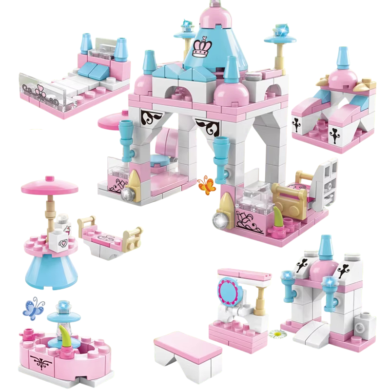 Página inicial Página inicial Tudo para crianças Brinquedos para crianças Construções e puzzles Conjunto de construção do castelo para princesas 13 x 6.6 x 11 cm Castelo para meninas 6 em 1 Conjunto criativo de construção com torres e acessórios
