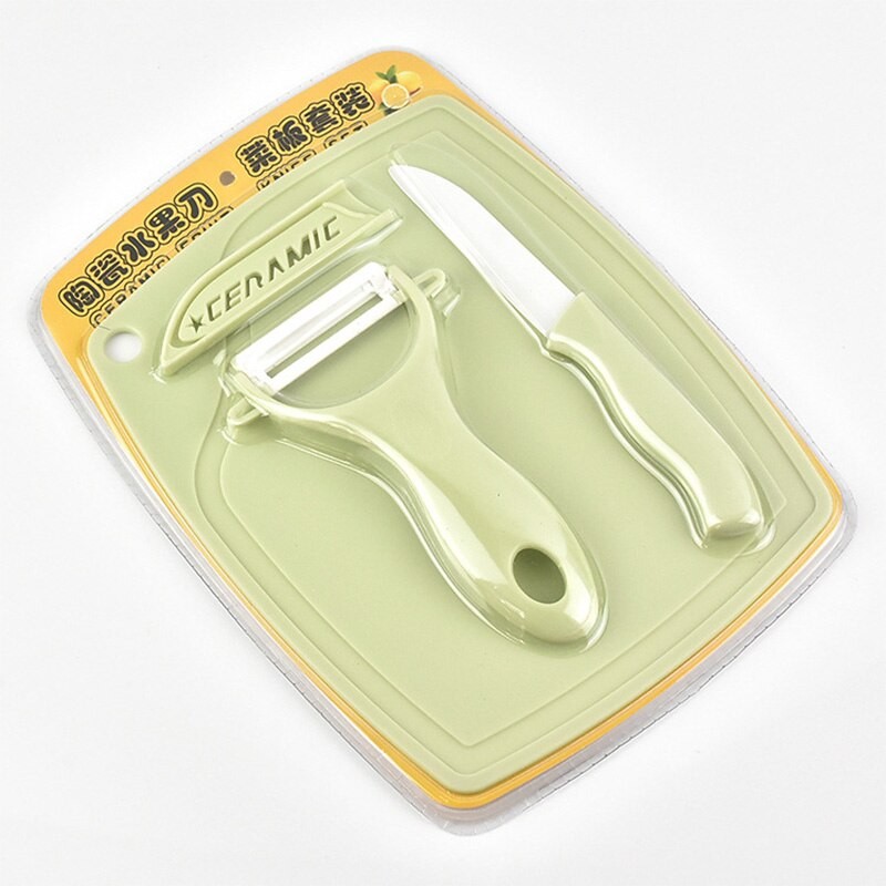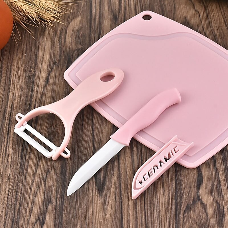 Conteúdo da embalagem: 1x faca, 1x descascador, 1x tábua