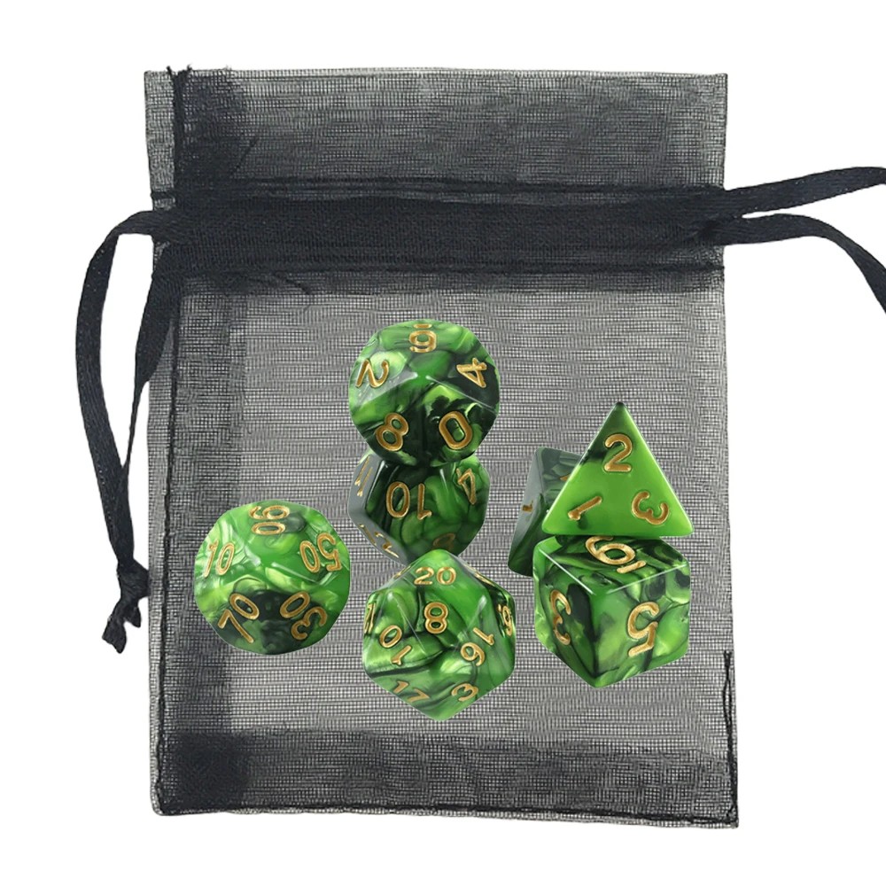 Conjunto de dados 7 pcs e saquinho Dados poliedrais RPG em acrílico para Dungeons & Dragons Jogos de fantasia de mesa