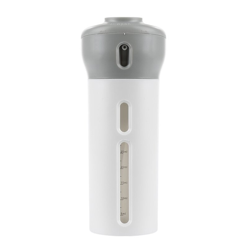 Prático dispensador contém 4 frascos, onde pode colocar diferentes cremes ou champôs.