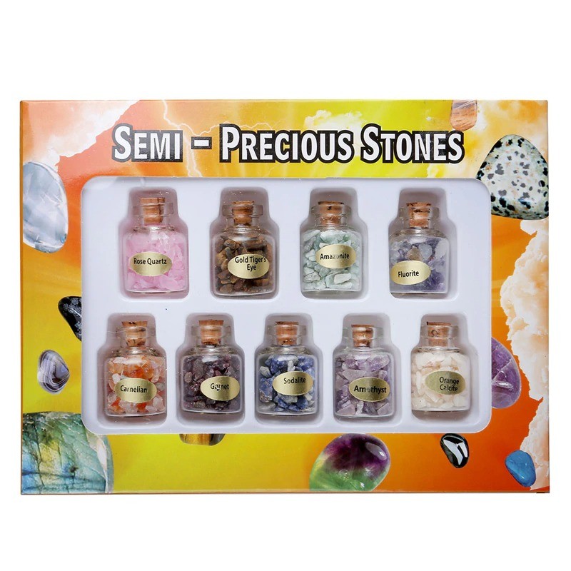 Conjunto de frasquinhos com cristais 9 pcs