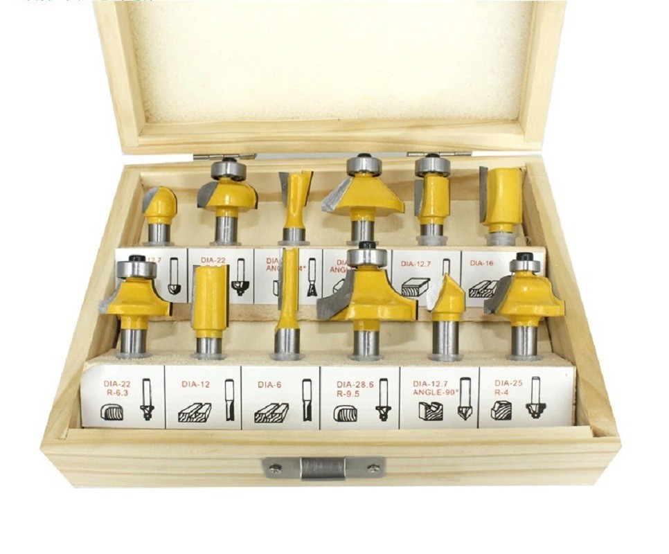 Conteúdo da embalagem: 12x fresa, 1x caixa de madeira