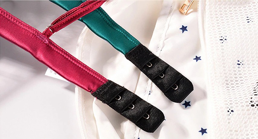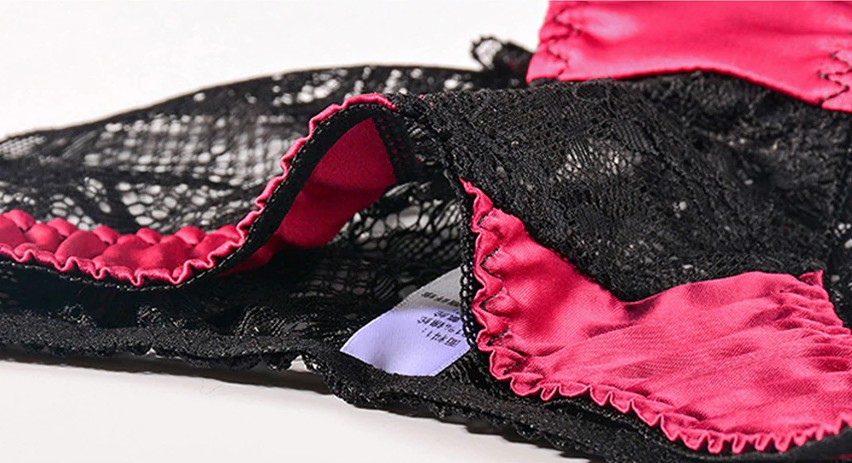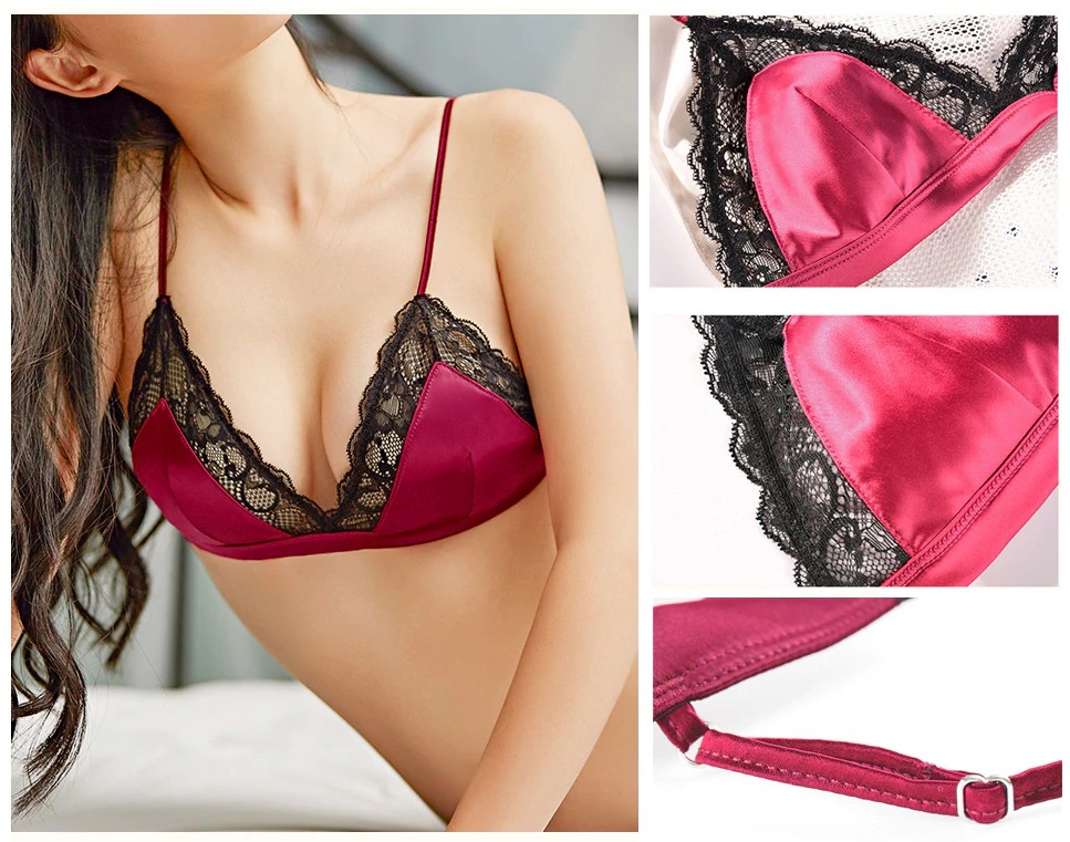 O conjunto de lingerie é composto por um sutiã Push-up e cuecas em renda.