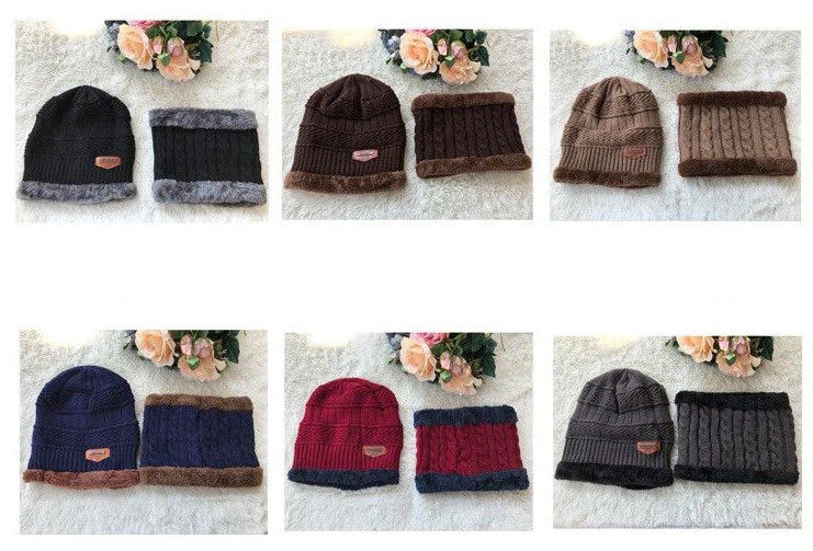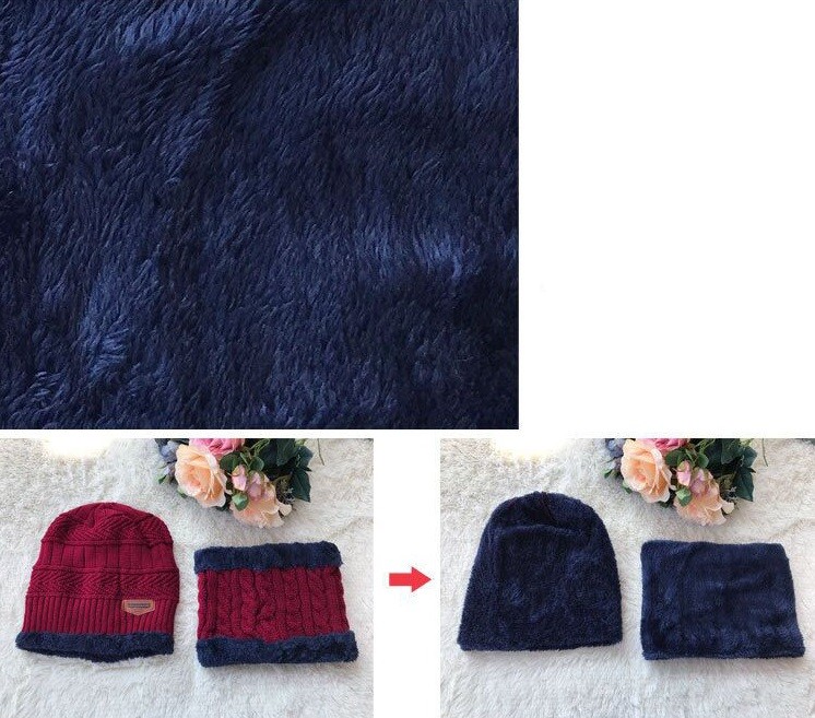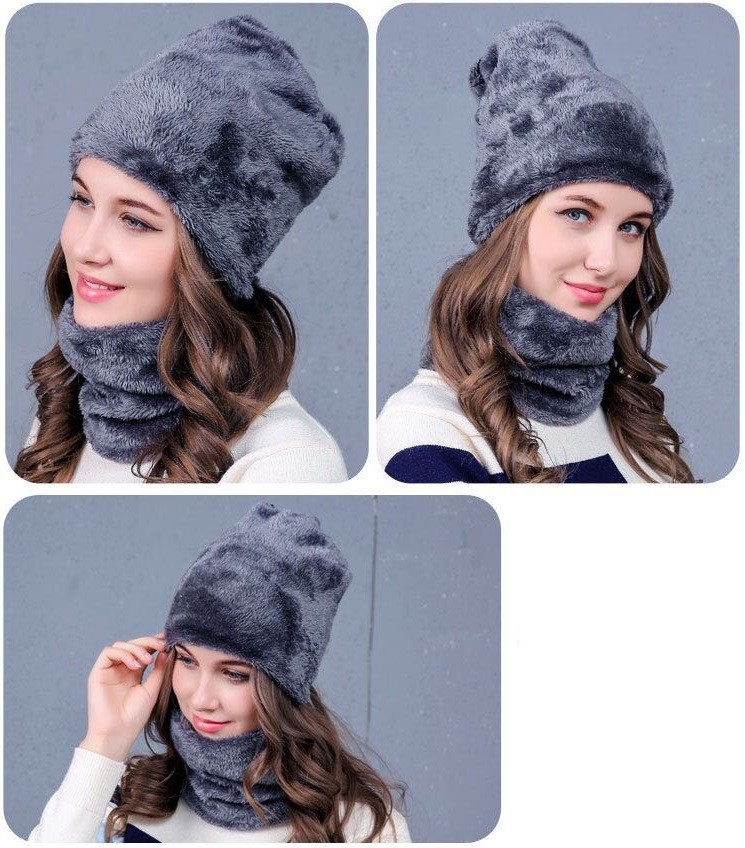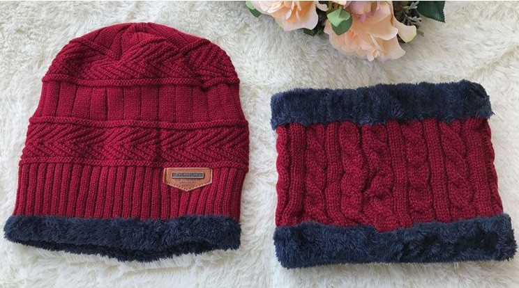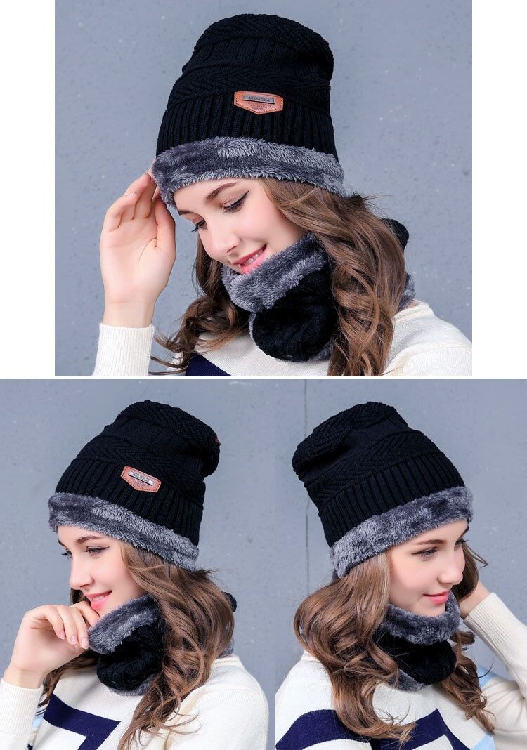 O conjunto inclui um gorro de malha e um cachecol para senhora.