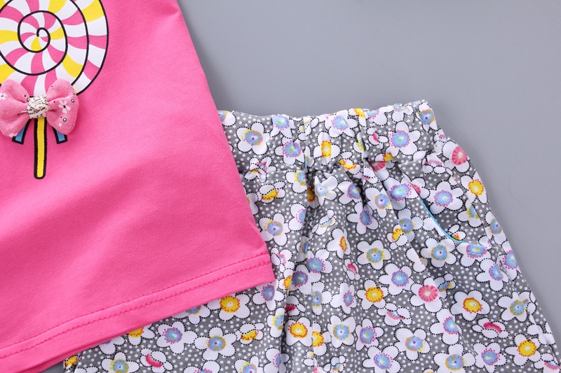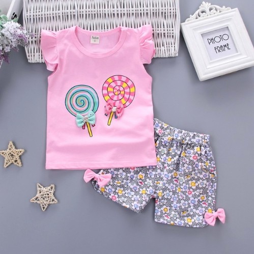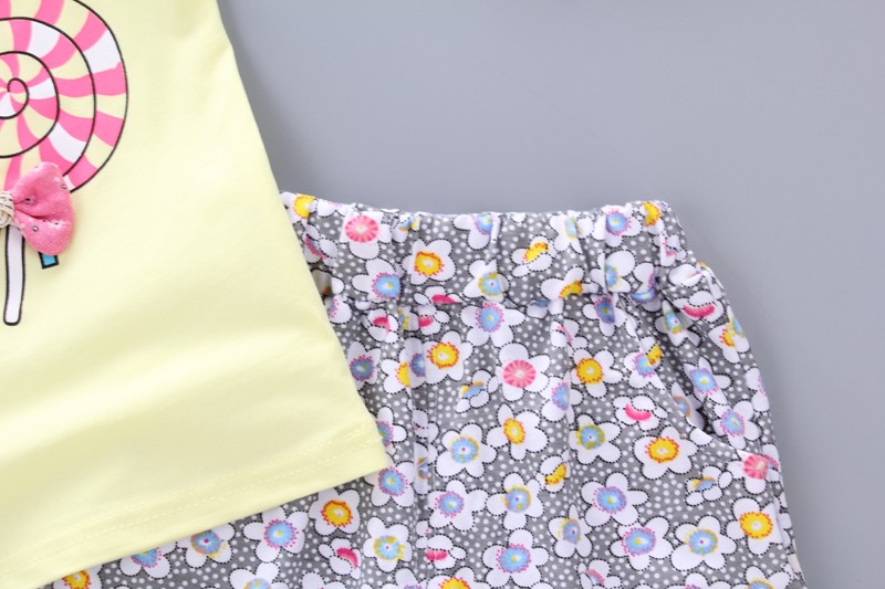Conjunto de menina - T-shirt com rebuçados e calções com flores J2493