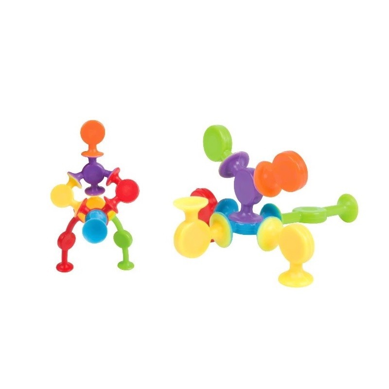 Este conjunto com 16 peças é uma excelente forma de apoiar o desenvolvimento das habilidades motoras do seu filho. O conjunto ajuda a desenvolver a imaginação infantil. Graças ao princípio da ventosa, as peças ligam-se umas às outras com um simples pressionar.
