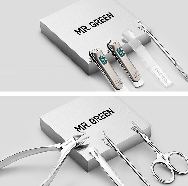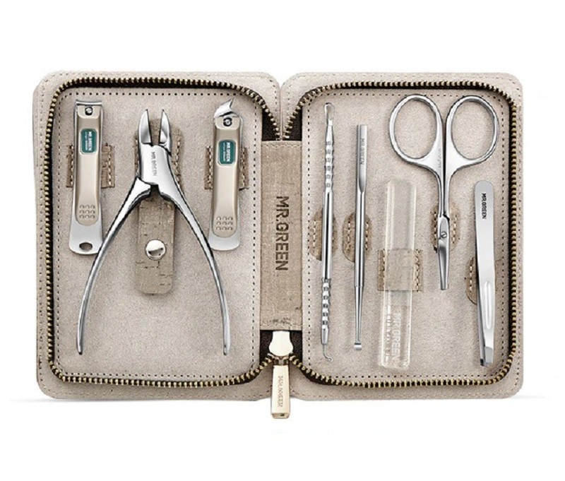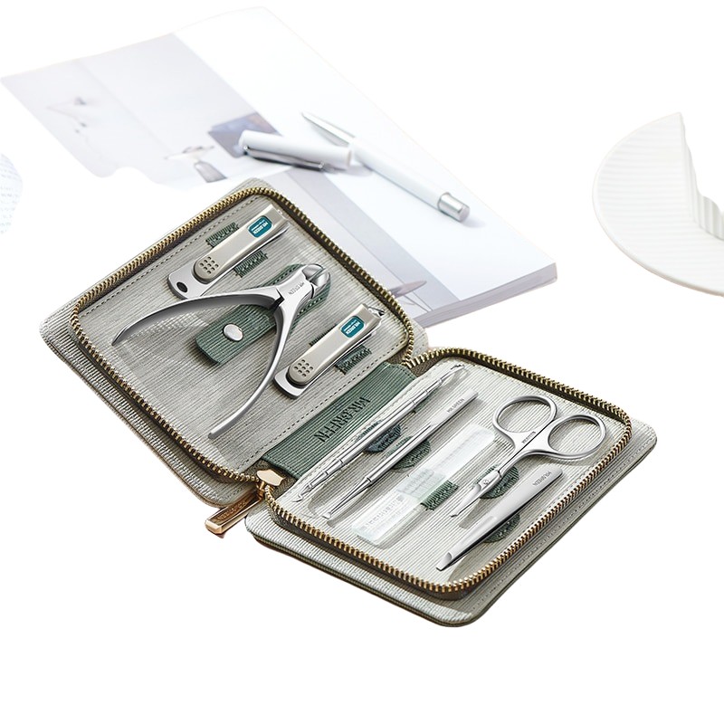 Conjunto de alta qualidade com acessórios para cuidados das unhas das mãos e dos pés. Fabricado em aço inoxidável. O conjunto é fornecido numa bolsa de viagem compacta.