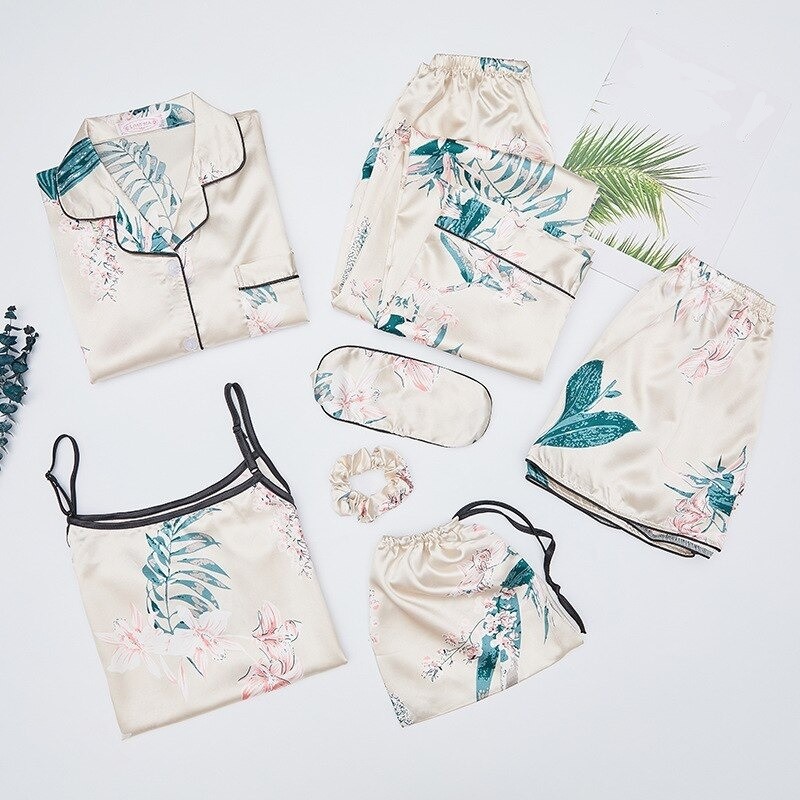 Conteúdo da embalagem: 1x top, 1x camisola, 1x calções, 1x calças, 1x máscara para dormir, 1x faixa, 1x saco