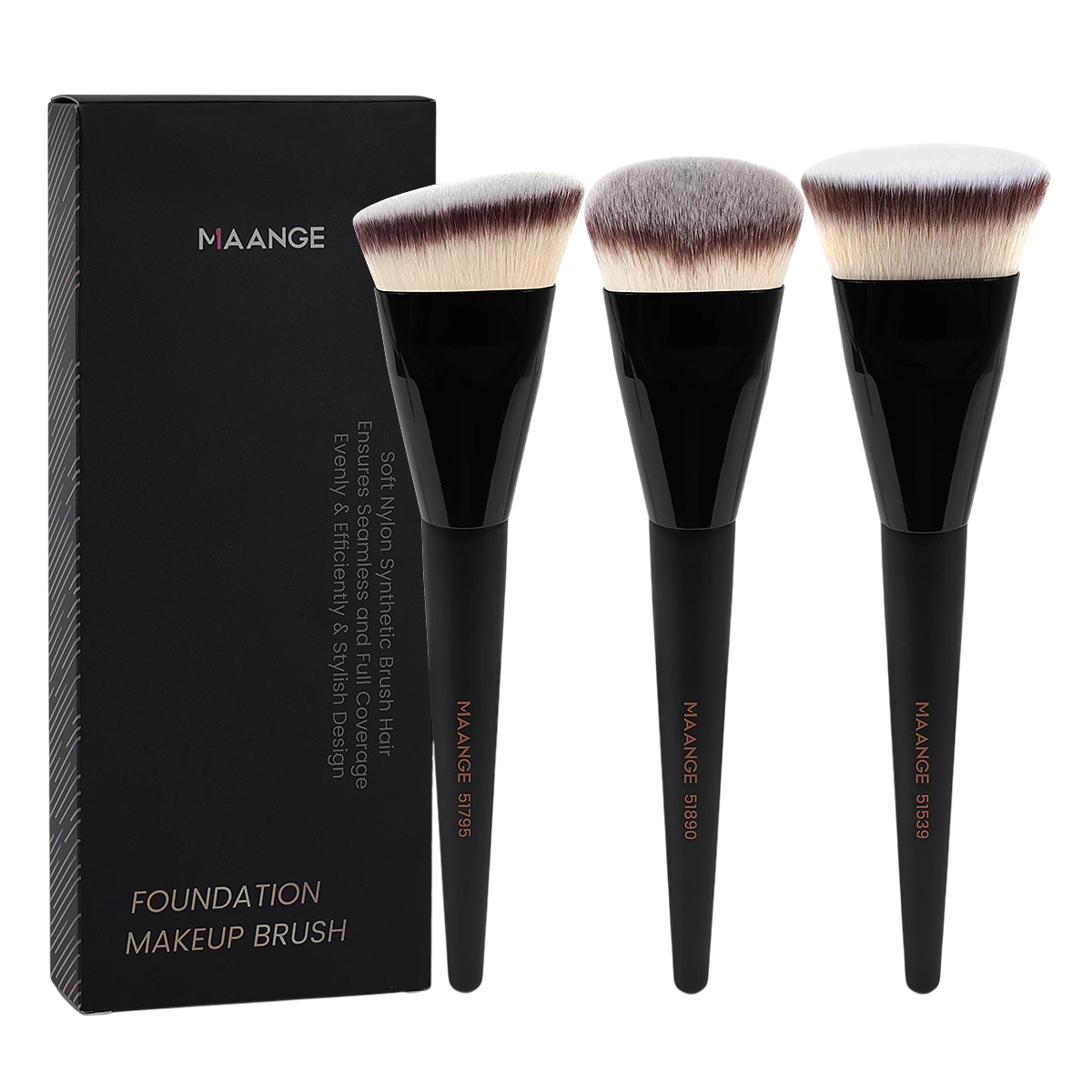 Conjunto de pincéis de maquilhagem 17 x 4 cm com 3 ângulos e cabeça redonda Pincéis com fibras sintéticas Cerdas macias Pincel cosmético em caixa