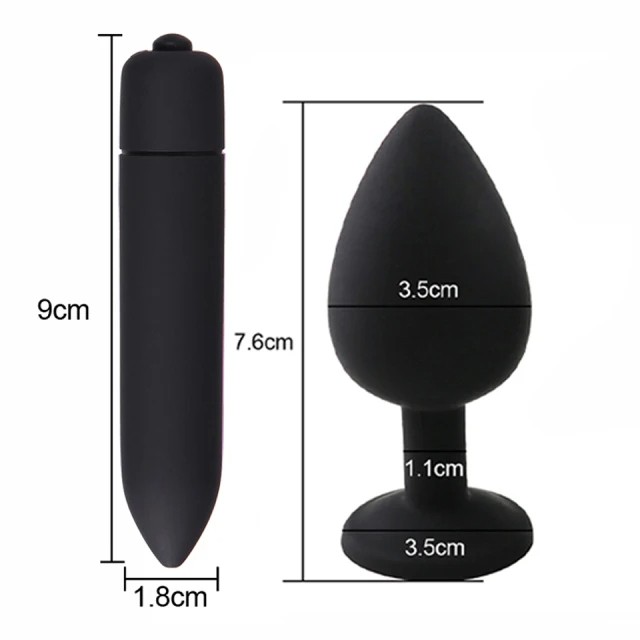 Este conjunto inclui um plugue anal preto de silicone macio e flexível com pedra removível e um mini vibrador, que adiciona mais opções de estimulação. É fabricado em silicone, que é macio, flexível e seguro para a pele. Para manter a higiene e a durabilidade, é necessário utilizar apenas produtos de limpeza específicos para brinquedos eróticos de silicone. A lubrificação deve ser feita exclusivamente com géis lubrificantes à base de água, pois outros tipos podem danificar o material. Para armazenamento a longo prazo, recomenda-se guardar num saco de tecido, pois sacos de plástico podem afetar as propriedades do silicone.