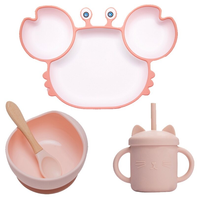 Com este conjunto, a hora da refeição será um pouco mais divertida! O prato de silicone em forma de caranguejo tem ventosas. Fabricado em silicone não tóxico e resistente ao calor. Apropriado para micro-ondas e congelador.