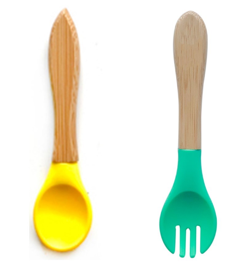 Conjunto de talheres de bambu para crianças 2 pcs