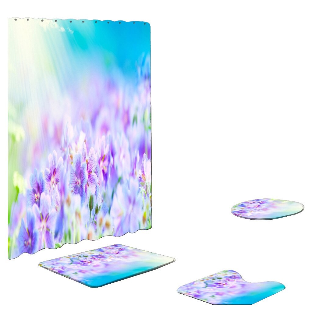 Página inicial Página inicial Casa e utensílios domésticos Casa de banho Cortinas de duche Conjunto de tapetes de casa de banho e cortina de duche 4 pcs