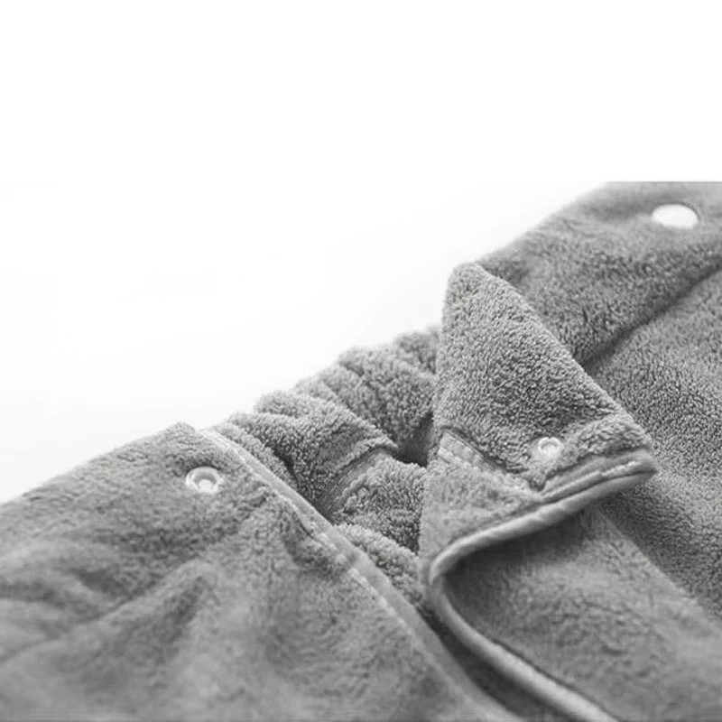 • Toalha maior 70x140 cm com bolso e fecho de botões – mantém-se no corpo e não escorrega.