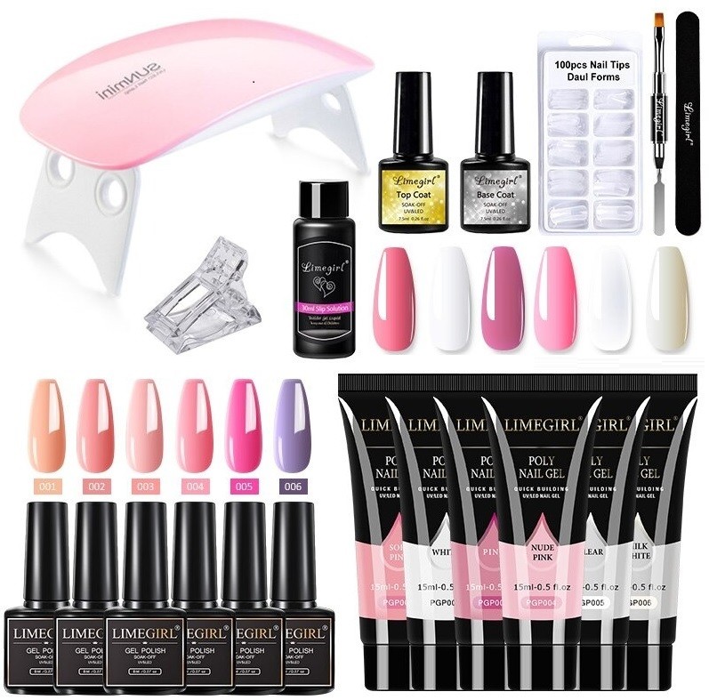 Conjunto para modelagem de unhas para iniciantes. Com este conjunto, pode facilmente e rapidamente modelar unhas de gel. Adequado para uso privado ou para atividade profissional. O conjunto inclui também uma mini lâmpada UV/LED.