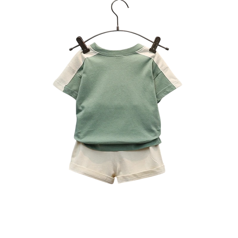 • Conjunto de Verão Unissexo para Crianças composto por camiseta e calções