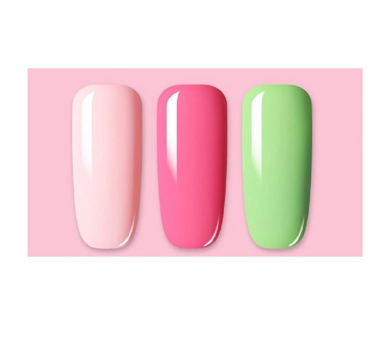 Este conjunto de vernizes em gel garante um aspeto perfeito para as suas unhas. Seca rapidamente com a utilização de luz UV. O conjunto contém 3 frascos com diferentes tons. O volume de cada frasco é 7 ml.