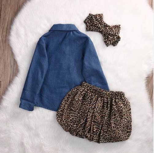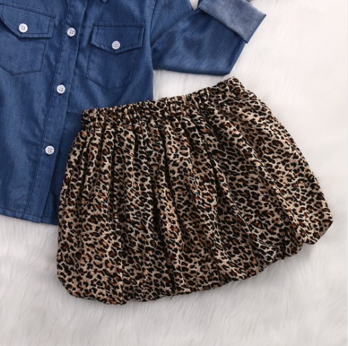 Conjunto estiloso para meninas, que contém uma camisa, uma saia e um laço decorativo.