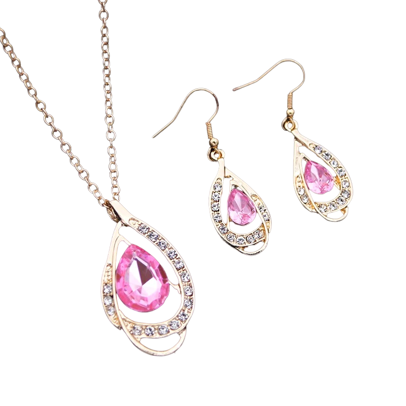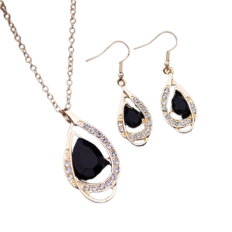 Com este conjunto feminino de colar e brincos, você brilhará com pedras decorativas todos os dias. Adicionará ao seu visual não só um toque de elegância e charme, mas também um brilho radiante, que a tornará irresistível. Invista nestas lindas joias e transforme cada dia num momento especial.