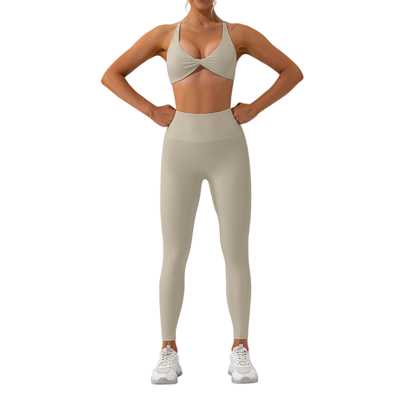 Conjunto feminino de leggings e soutien desportivo, de uma só cor