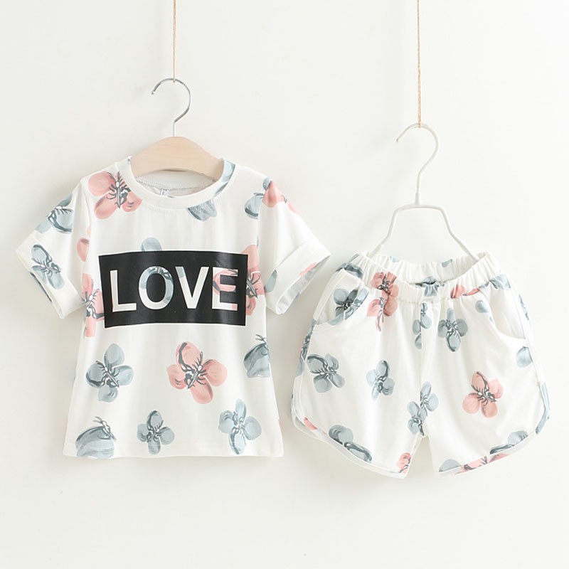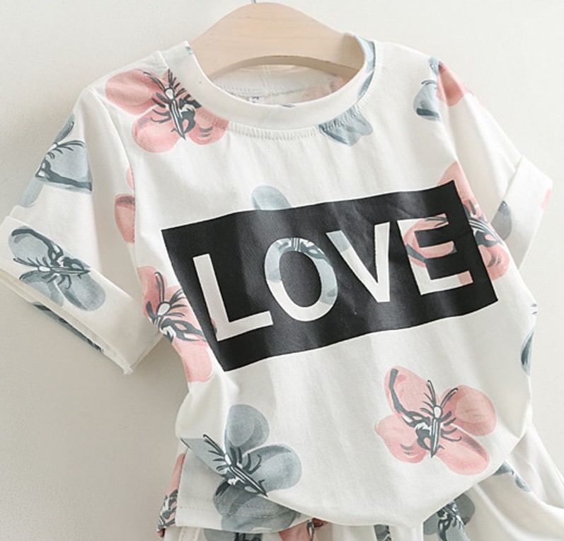 Conjunto Floral para Meninas - T-shirt e Calções J1269