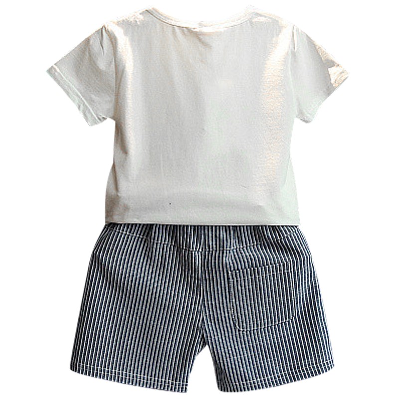 Krásný dětský set tričko s dinosaurem a proužkované kraťásky potěší každé dítě.