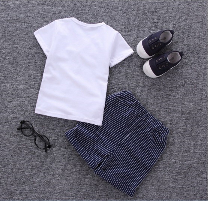 Este conjunto inclui uma camisa com impressão de fato e gravata e calções.