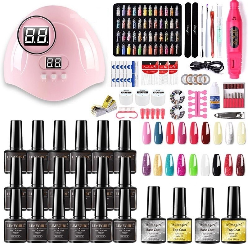 Página inicial Página inicial Saúde e beleza Kits de cosmética Conjunto para unhas de gel com lâmpada UV/LED