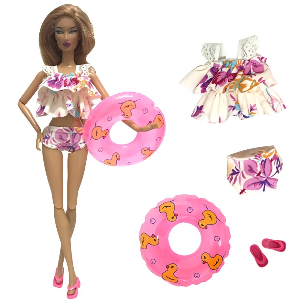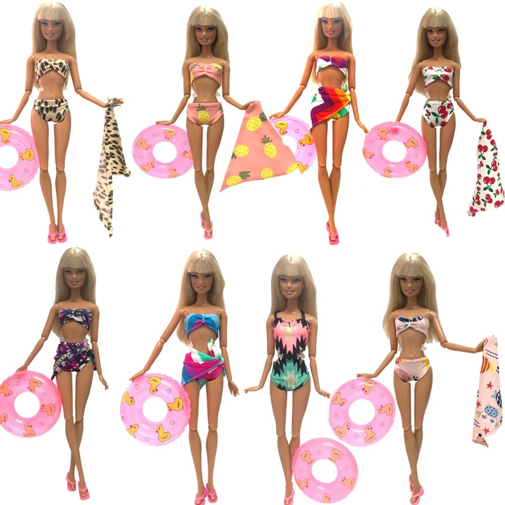 Conjuntos modernos e coloridos para a praia para bonecas.