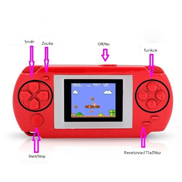 Desfrute de muita diversão e jogos com esta consola de jogos com ecrã colorido.