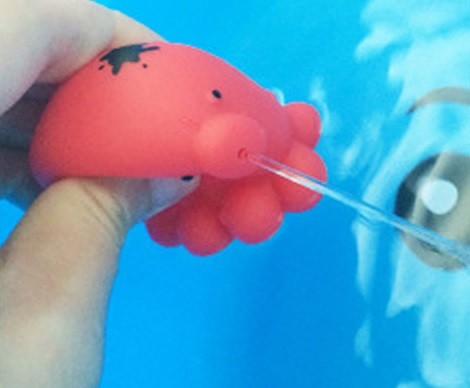 Os animais de esguicho feitos de material macio podem ser facilmente preenchidos com água ao serem pressionados, e a diversão começa.