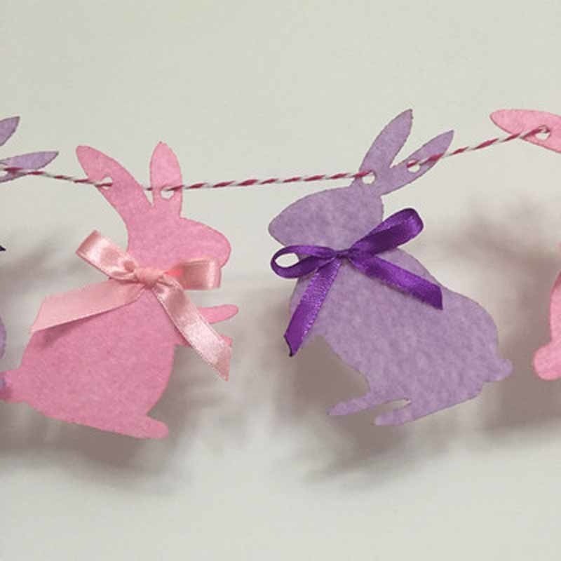 Faça a sua decoração de Páscoa em casa com estes coelhinhos. Os coelhinhos são colocados numa corda e formam uma corrente.